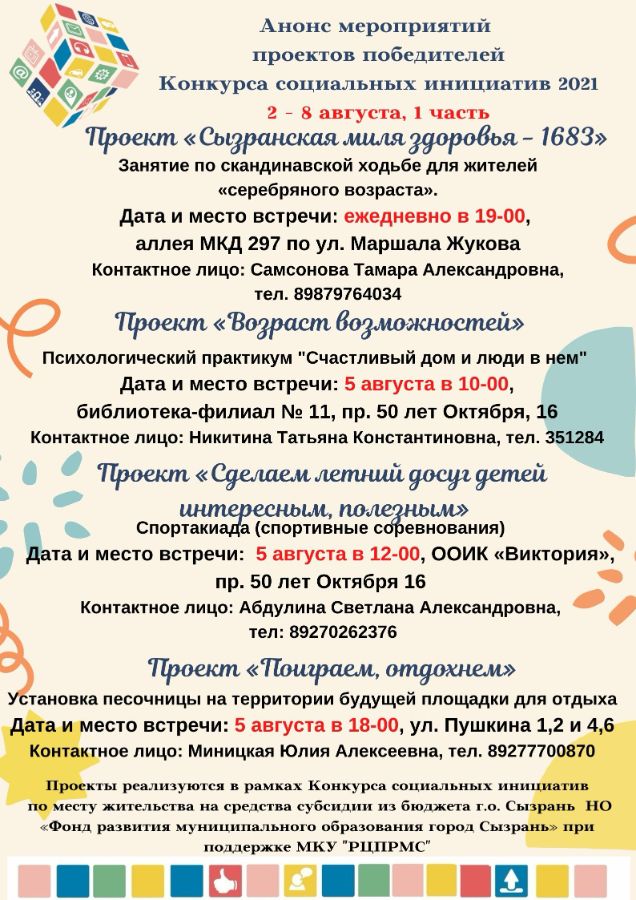 Афиша мероприятий Конкурса социальных инициатив 2-8 августа, 1 часть