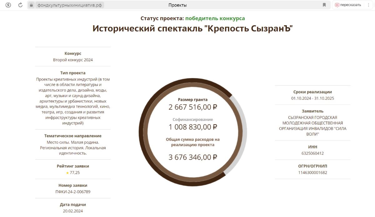 Поздравляем сызранскую организацию, чей проект был поддержан конкурсной комиссией: